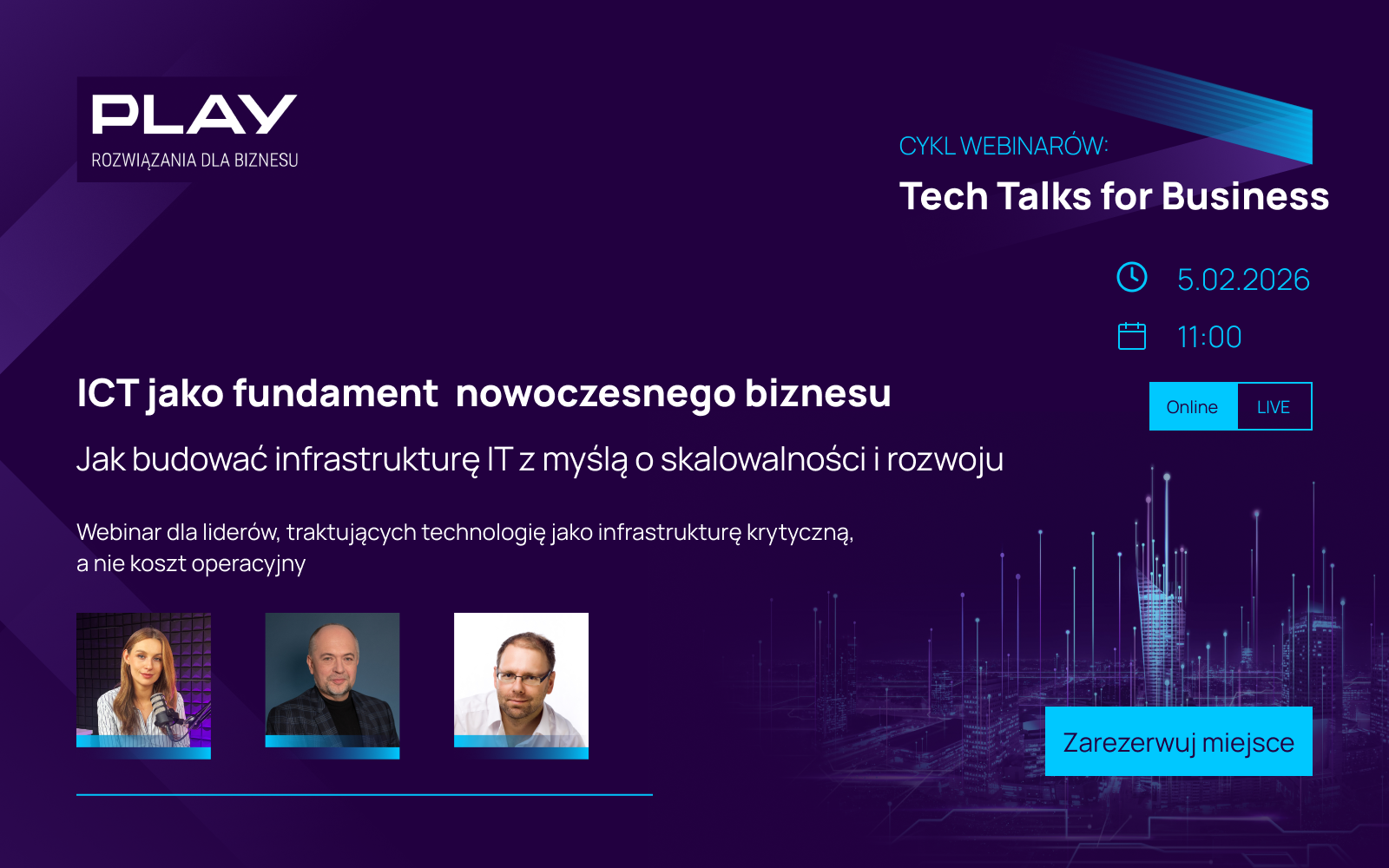 Architekt rozwiązań ICT z ponad 30-letnim doświadczeniem w projektowaniu i wdrażaniu środowisk IT dla biznesu. Podczas webinaru pokaże, jak łączyć chmurę, rozwiązania hybrydowe i bezpieczeństwo w spójną architekturę, która realnie wspiera skalowanie firmy, stabilność operacyjną i decyzje biznesowe B2B. To wiedza szczególnie istotna dziś, gdy firmy muszą łączyć szybki rozwój z kontrolą kosztów i bezpieczeństwem infrastruktury IT.